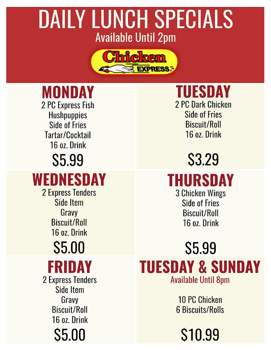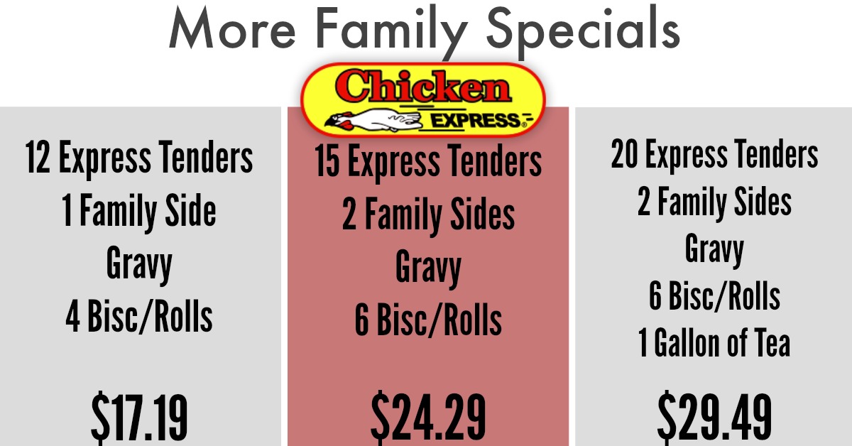 - Express Tenders: Choose from regular, spicy, or half-and-half, served with gravy and a warm roll or biscuit, making them a customer favorite.